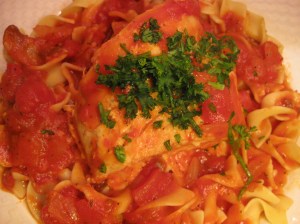 Adjusting to eating when you are away from home can be difficult, but with only a few simple ingredients you can make the most delicious chicken dish ever! It’s called Chickeroni Pasta and all you need to buy is chicken, a box of pasta, pepperoni, a can of simple pasta sauce, and a can of diced tomatoes. It feeds at least two and only costs about $15! Simply cook the pasta in water, like usual, while simultaneously frying the chicken in a pan. Make sure you fry it in water, instead of oil; too much oil can actually ruin the dish. After the chicken is just about finished, add the pepperoni to give it a bit of the chicken flavor. Once that is to your liking, place the pasta on a dish and top it with the chicken and pepperoni. Then, in a small bowl, heat the sauce and tomatoes in the microwave for about 15 seconds. After it is warm, place on top of the whole dish; the chicken and pasta will help the sauce heat to an edible level. Using your discretion and your personal tastes, you can add parsley on top (as show above), or any spice you wish. Now, simply cut, bite, and enjoy.