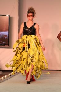 If you attended the Fashion show this past weekend, you probably noticed a few pieces that were made from different kinds of tape. There were dresses made of duct tape, caution tape, and more. This fashion was created by Lisa Crapsi and I have been communicating with her for the past couple of days to learn a bit more about her work.