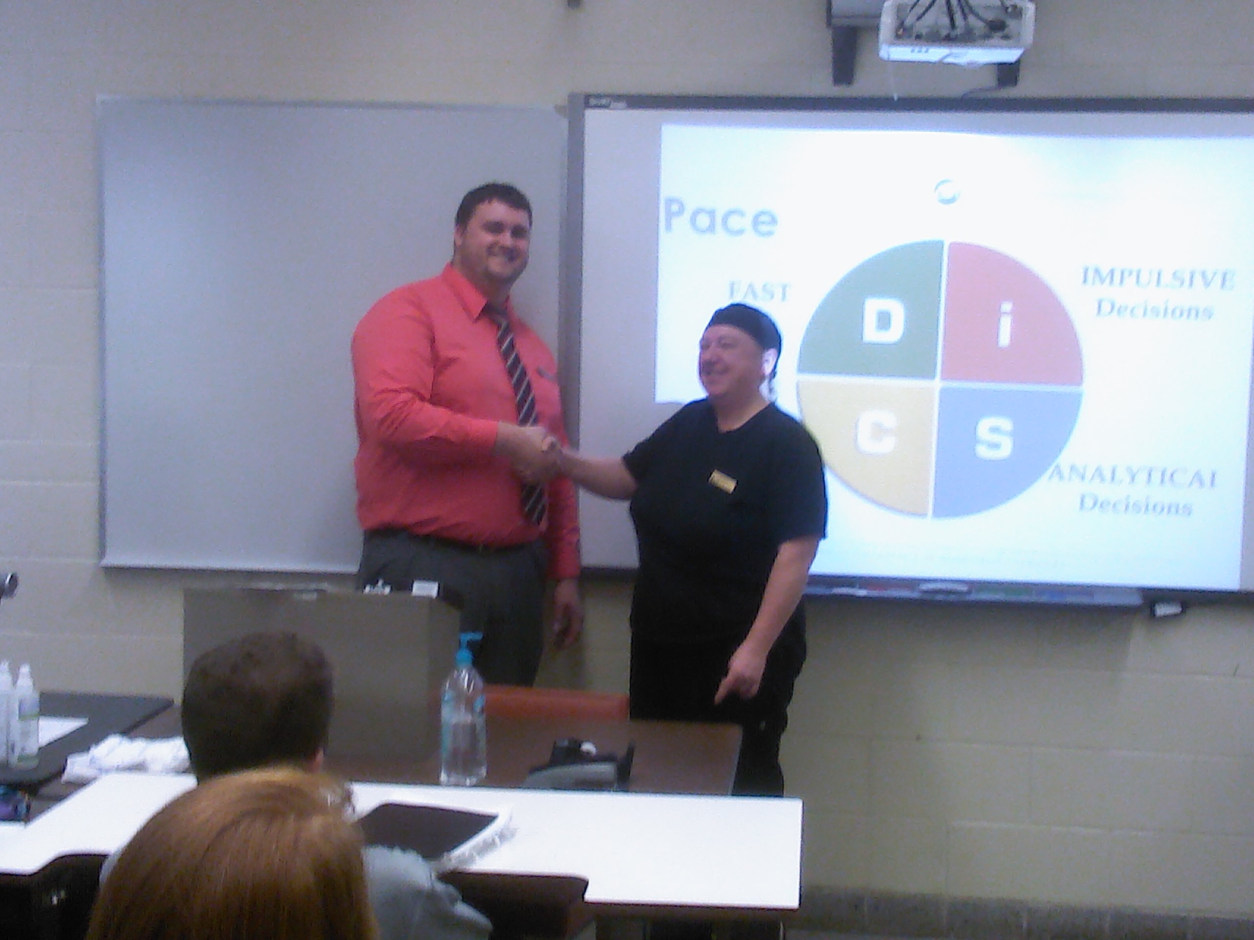 For example Mr. Boland stated that a person with a Dominant personality is someone who wants to take authority, so telling a person with a dominant personality what to do, isn’t always the greatest of ideas. Mr. Boland said the more effective way to talk business with a dominant personality is to get to the point, don’t ramble, or engage in small talk, keep it business oriented if you are conducting business with this person. Mr. Boland also gave an example of how to communicate with a conscientious person. Conscientious people like dominant ones, want to get to the point, they want the information straight forward, and will analyze the information and devise a plan accordingly, where as the dominant person would respond with an answer quickly and decisively. Mr. Boland utilizes the skills of analyzing people’s personalities, and communicating with them accordingly on a daily basis, whether it be with a student, an employee, or potential business partner selling products to him.