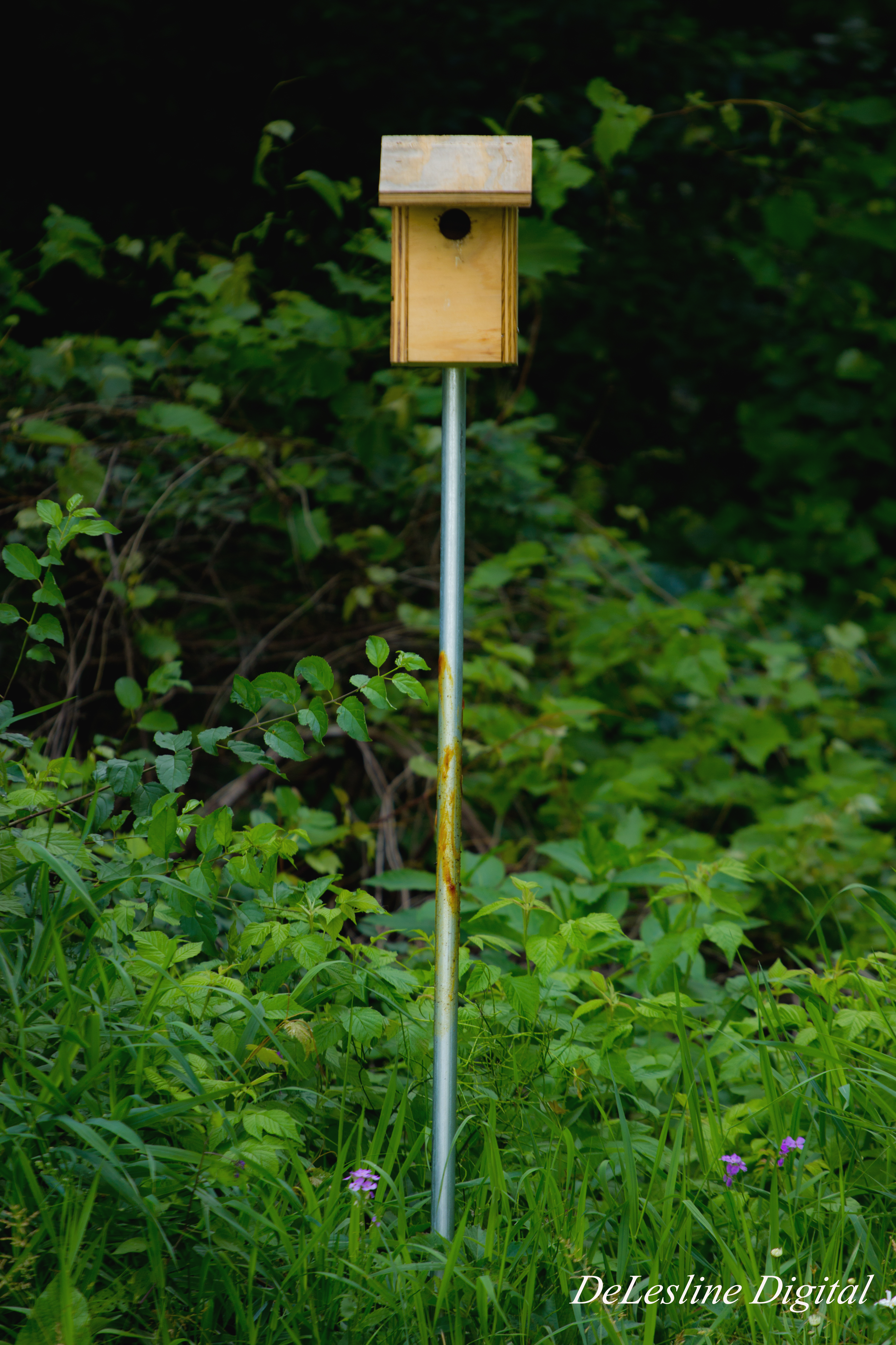 I then noticed a pretty cool looking birdhouse near the edges of the woods. G.C.C. has tons of birdhouses around the campus. Have you ever spotted one? They’re here thanks to Joe Lullo, an Eagle Scout who donated his time to building them five years ago. (Thanks Joe!) But as I approached the birdhouse, I heard