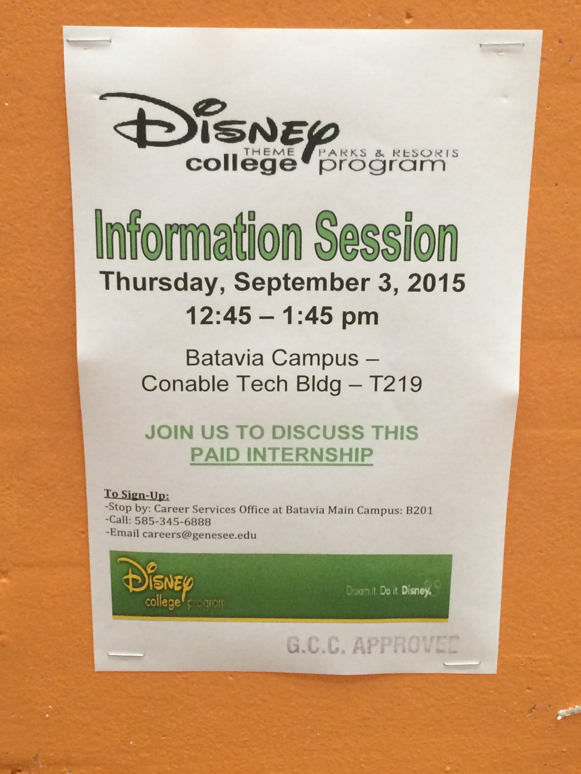 Also, how many of you have seen these little flyers posted around the school? Disney internships, what could be better??! I will definitely be attending the meeting, and I’ll be sure to blog about it!