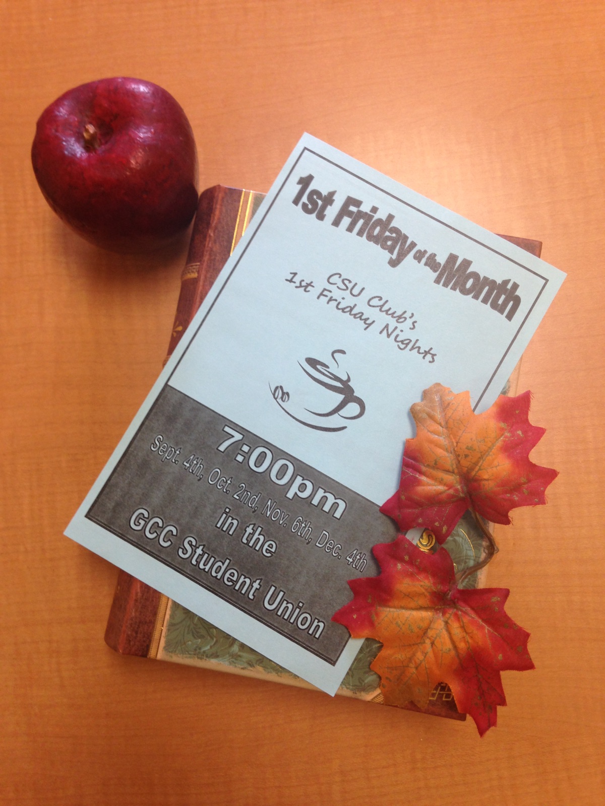 Every first Friday the Christian Students United club host a social night in the Student Union at 7p.m. It’s open to anyone, but it’s geared toward G.C.C. students. Students play games, eat pizza, and listen to guest speakers and live musicians. Tonight Alex Crossett will be on acoustics and Jason McGuire will be speaking.