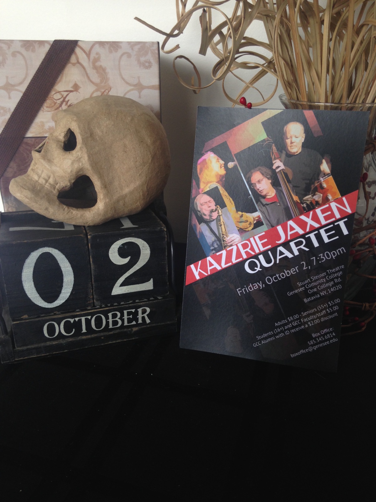 Tonight at 7:30 PM – 9:00 PM in the Stuart Steiner Theatre, the Kazzrie Jaxen Quartet will be performing! Jazz band members include Bill Chattin on drums, Don Messina on bass, Charley Krachy as vocalist, and Kazzrie Jaxen playing piano!