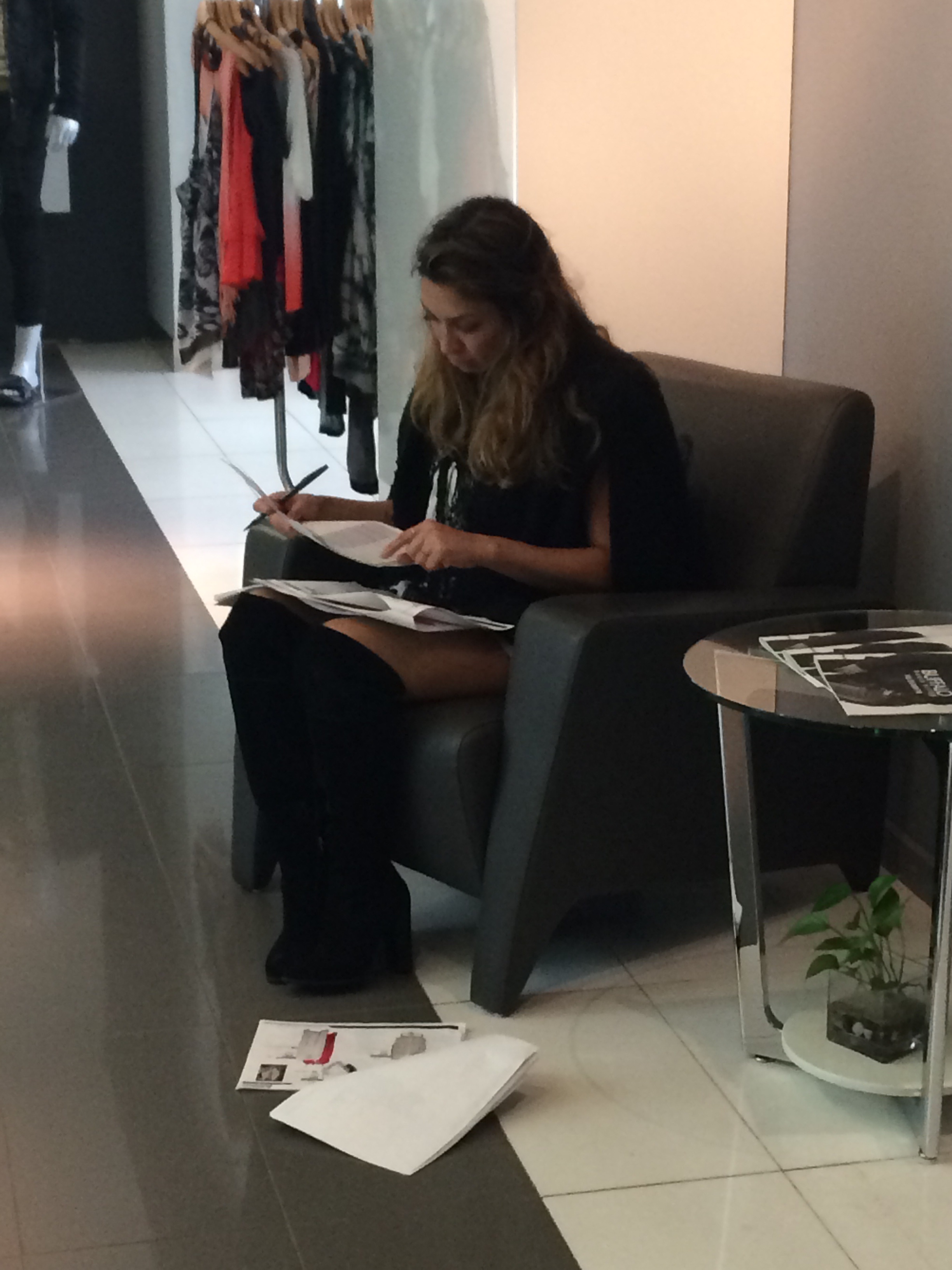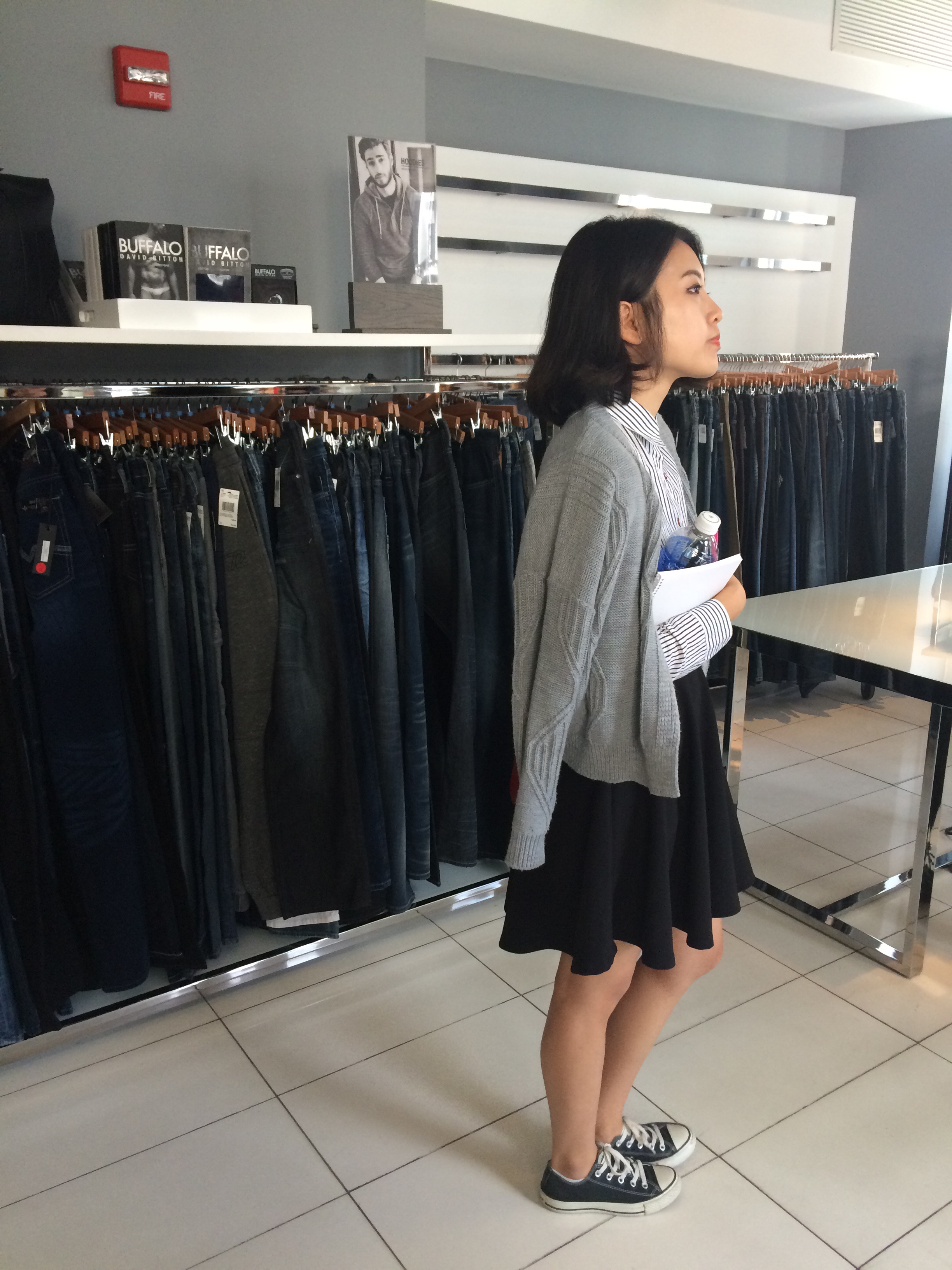 Our next stop was to the beautiful new Buffalo David Bitton Showrooms, to meet with PR Director Diane Alexander. Her job is trying to bring widespread awareness to the Buffalo brand, primarily through ad campaigns, working with bloggers, and use of social media. She allowed us to take pictures of the gorgeous Buffalo merchandise (literally denim heaven), and educated us about the company as well. They sell to all of the major retailers, as well as Amazon, and men’s apparel comprises 60% of their business. She loves fresh ideas, and is always looking for interns!