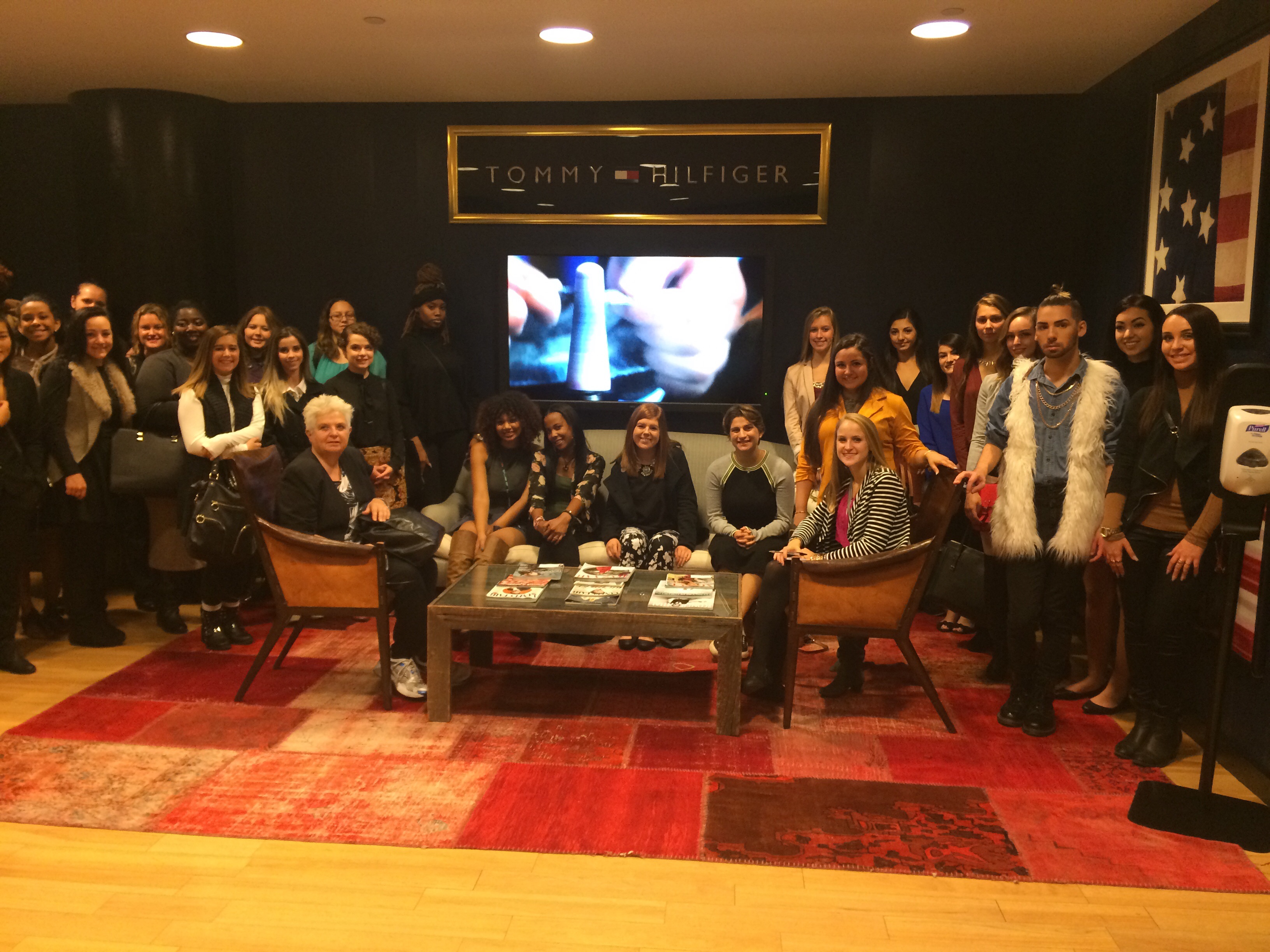 Today began with our first field trip to Tommy Hilfiger. We met with the lovely and talented alumni of the Fashion Business Merchandising program, Kristyna and Conner, and were also fortunate enough to meet with the design manager for the handbag team. After graduating from the GCC program Kristyna and Conner attended Buffalo State University, and LIM, respectively. Kristyna stumbled upon a posting on Indeed.com for Tommy Hilfiger interns, and Conner was alerted to the position via LIM. The rest, as they say, is history. The two have been with Hilfiger ever since. They primarily deal with ad campaigns, showrooms, and launches, and work to ensure the consistency of art and design messages. Leah, the design manager, graduated from Cornell’s fashion program, and then but in stints with Betsey Johnson as well as Coach before arriving at Tommy Hilfiger. She explained that her team relieves seasonal briefs detailing the aesthetic of a collection, and the work begins from there. They draw inspiration from everywhere, and seek to filter trendy elements of high fashion, down to mass appeal. All while maintaining the signature “Tommy” look.