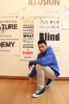 The Digital Art show displays the artwork of G.C.C. students who are enrolled in the Digital Art program. The pieces of artwork in the gallery are amazingly bold, aesthetically pleasing, and fantastically creative. Below are photographs of some of the students with their artwork. (Click to enlarge)