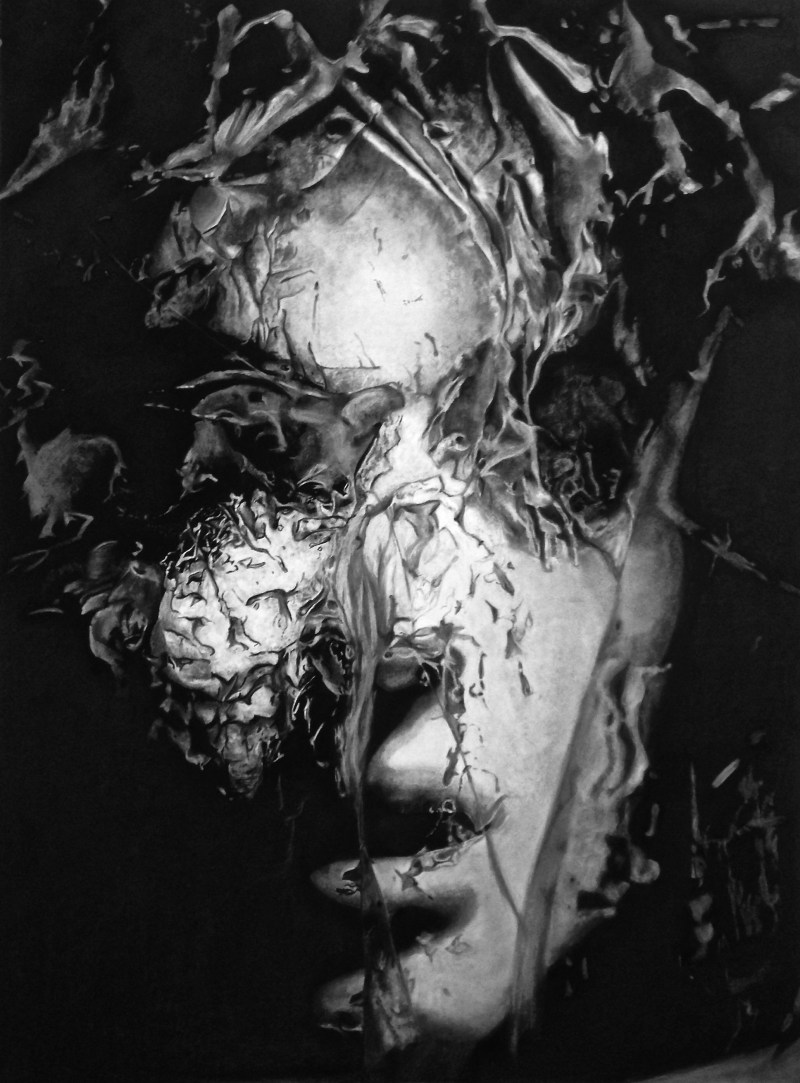 You may or may not know, but this exhibit can be viewed Monday – Friday from 10am til 2 pm. The drawings are large scale and done in charcoal. It’s called Fugue State by Tricia Butski and she uses elements of distortion and fragmentation to take on images of human beings.