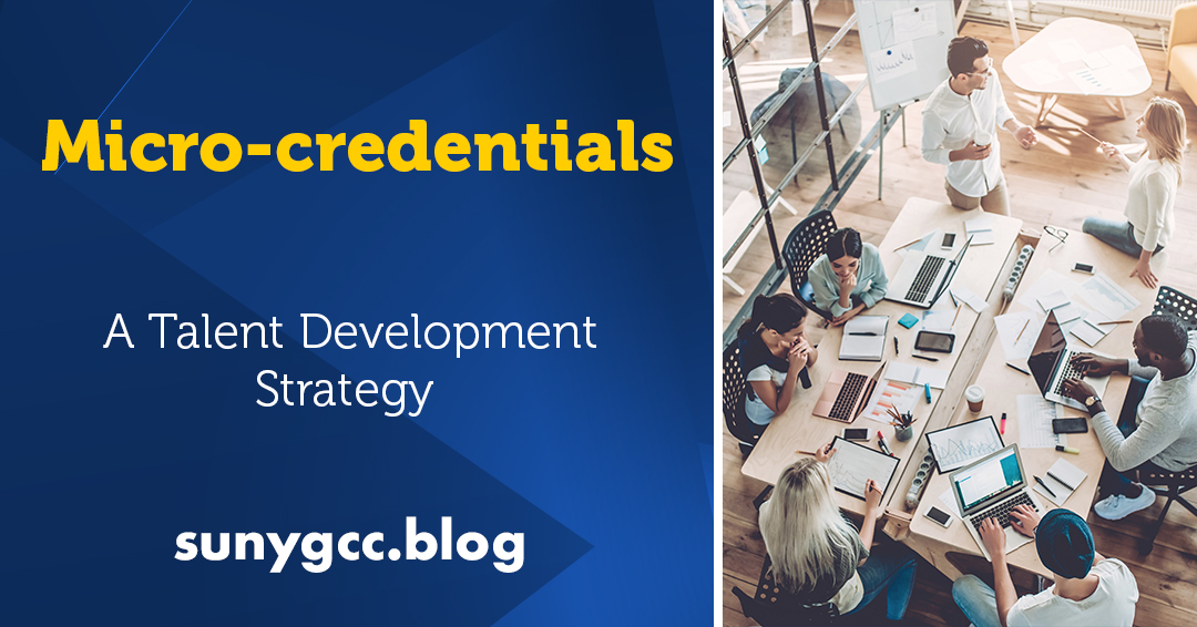 Micro-credentials can help you add, update and upgrade the knowledge you have on a topic. As your career evolves, you may find yourself with responsibilities outside your original job description like human resources, sales, accounting, planning company events, etc. All of these tasks require skills that you can obtain through a Micro-credential at Genesee Community College. For more information on the available micro-credentials visit www.genesee.edu/academics/degree-opportunities/#micro or email Amy Slusser at alslusser@genesee.edu .