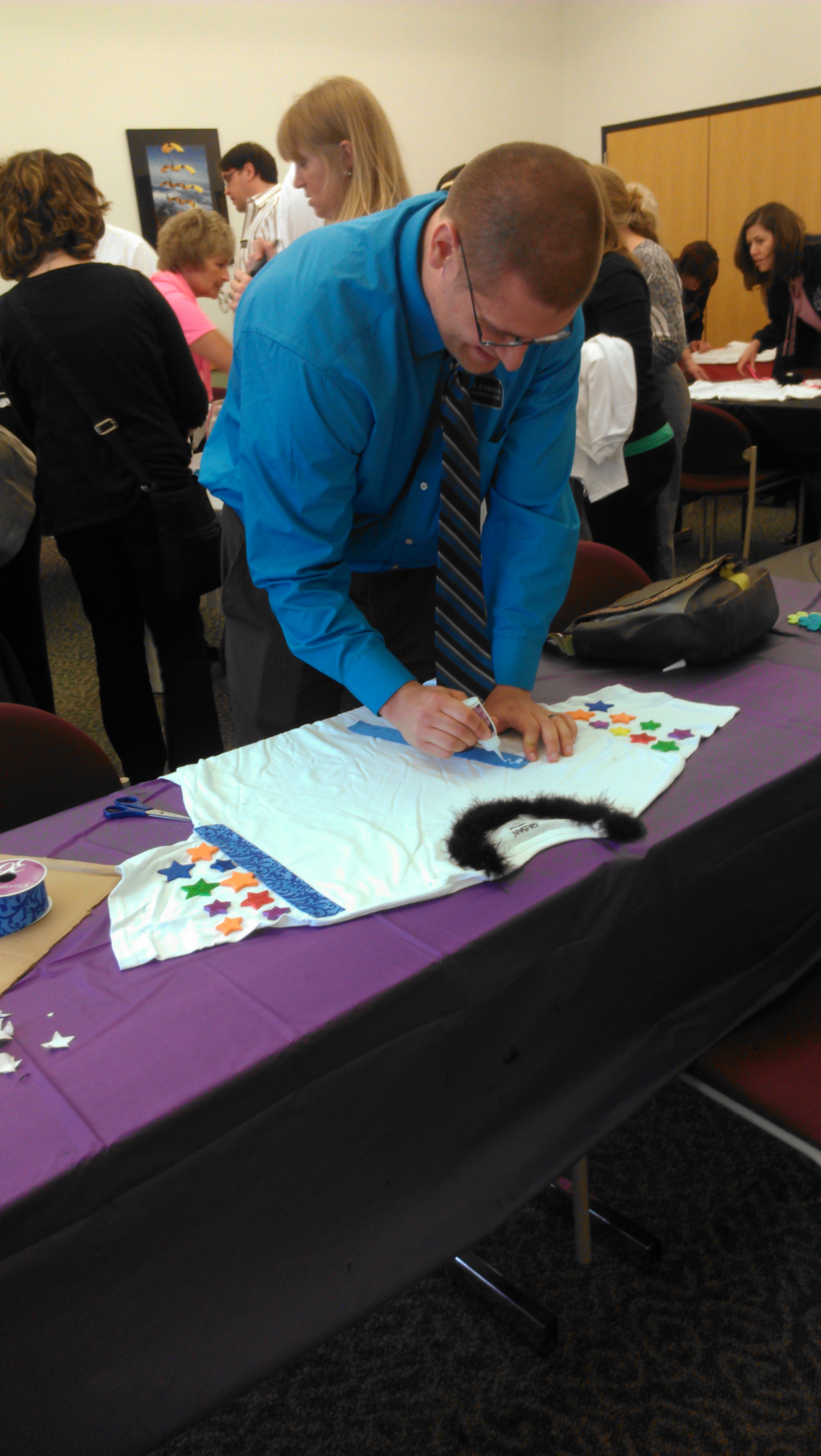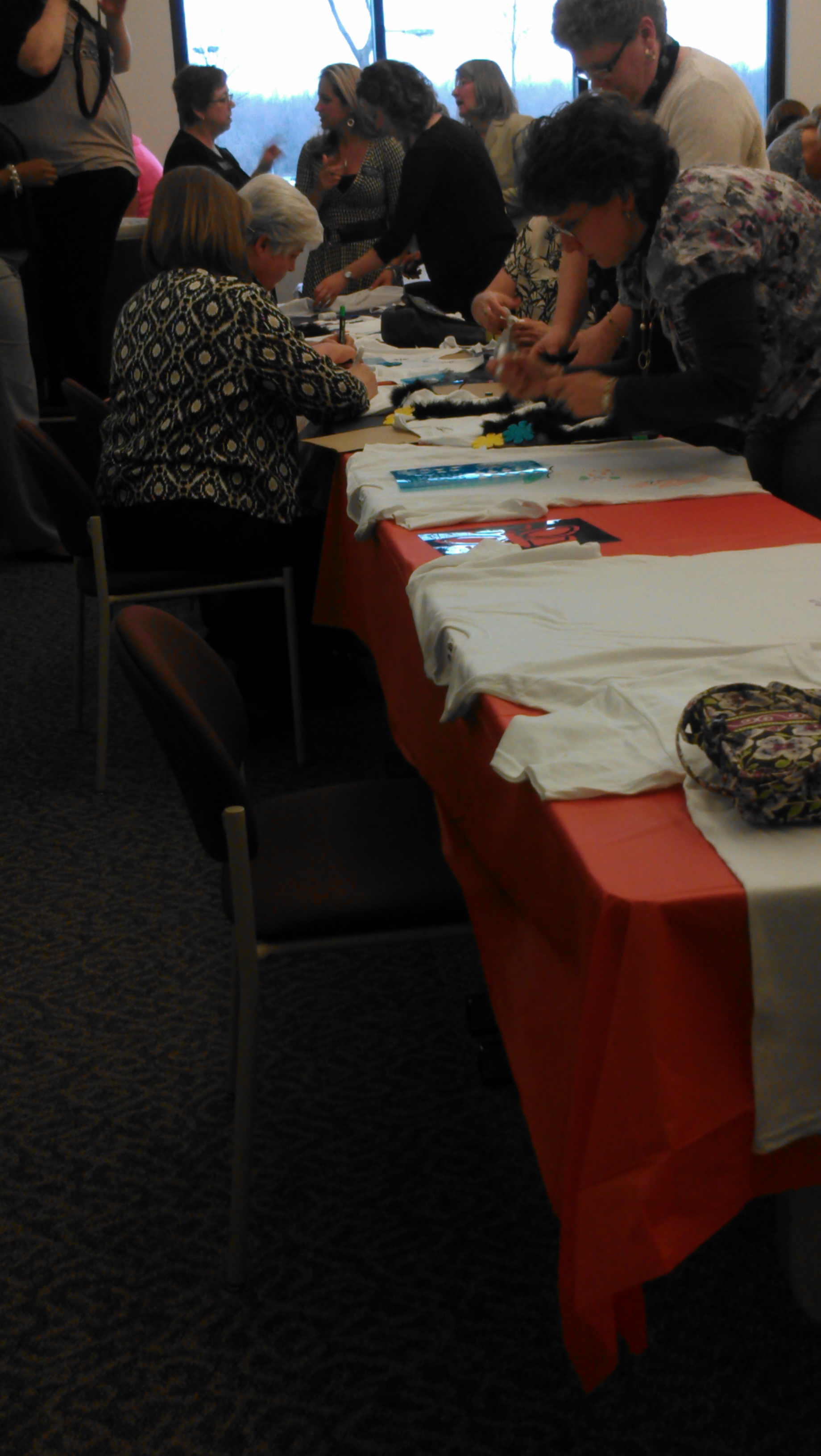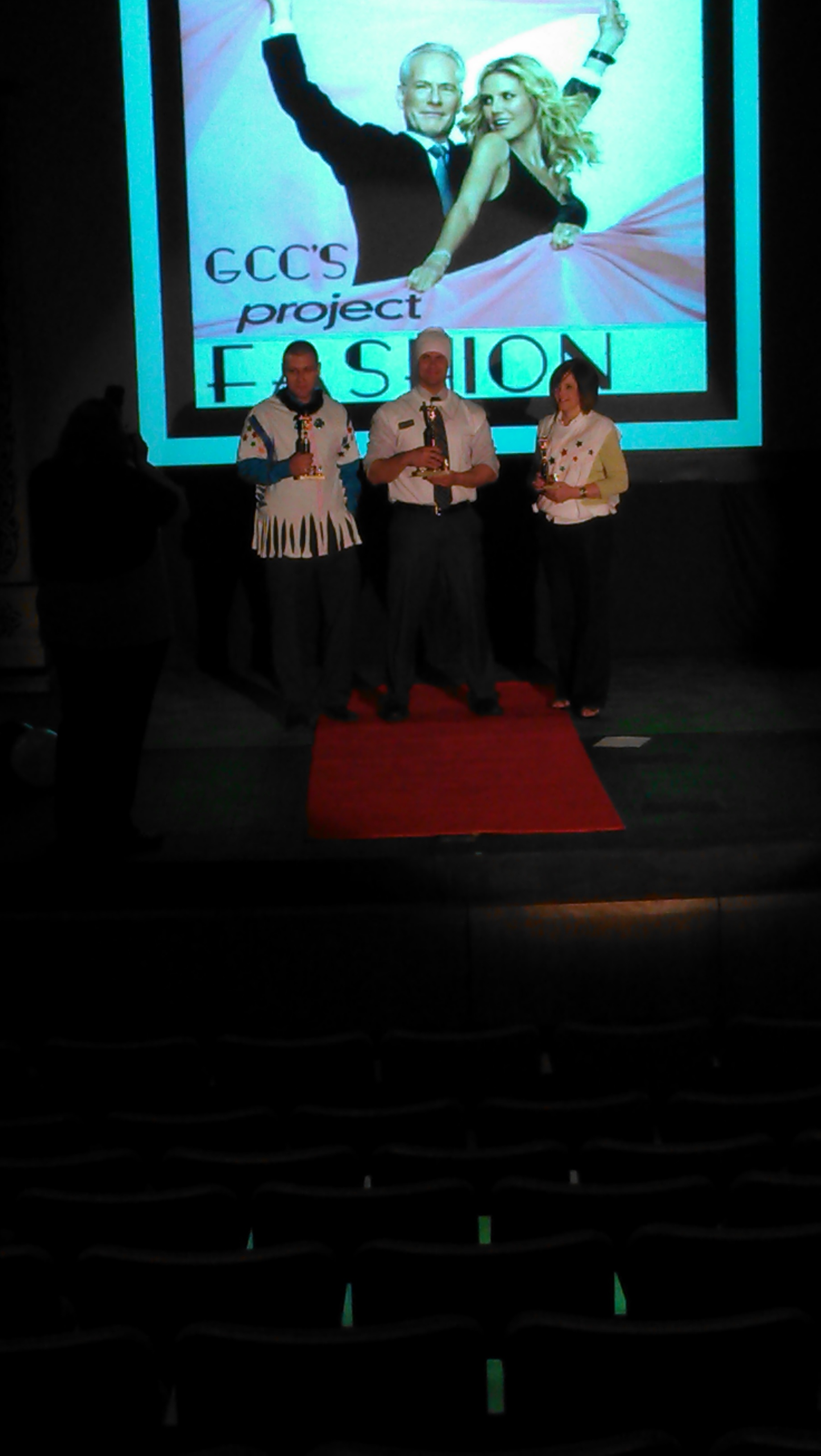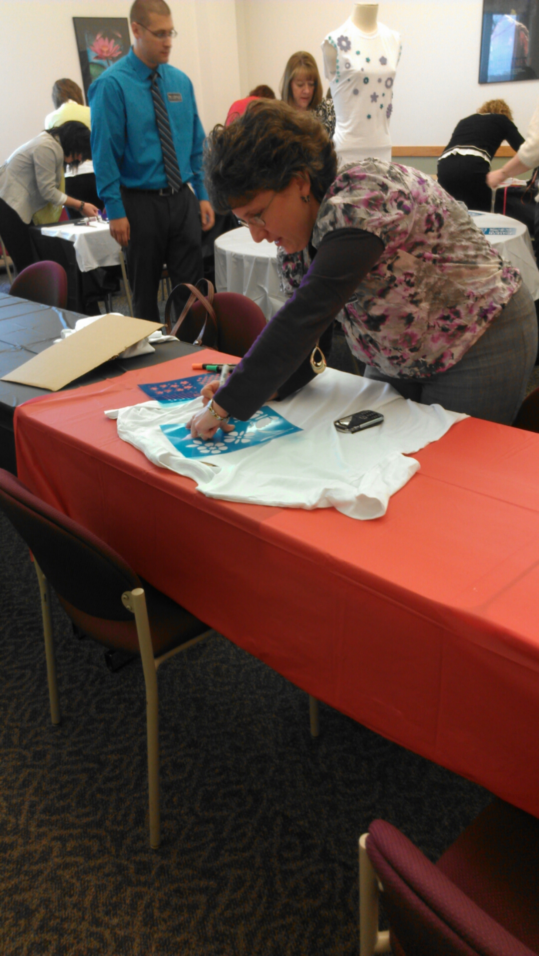 Today, April 24th, counselors from high schools all around came to visit GCC, along with their secretaries for a surprise event. This years gathering was to educate these visitors about the Fashion Program in a fun and exciting way. During the event, the counselors and secretaries  designed their own t-shirts. The end product was then displayed in a mini fashion show. The 3 people that had the most creative design and knew how to strut their stuff, on the mini runway, were awarded with a trophy.