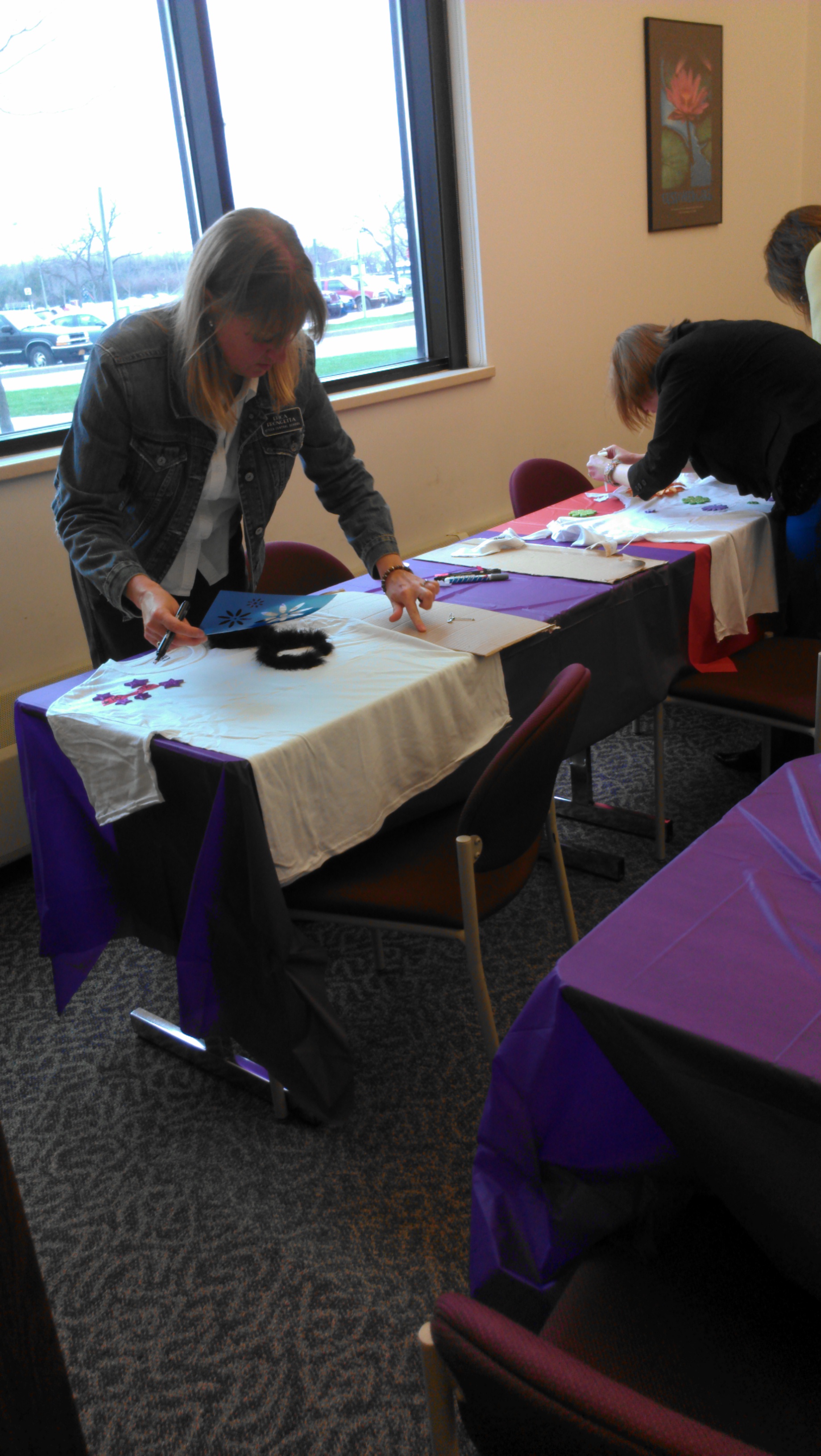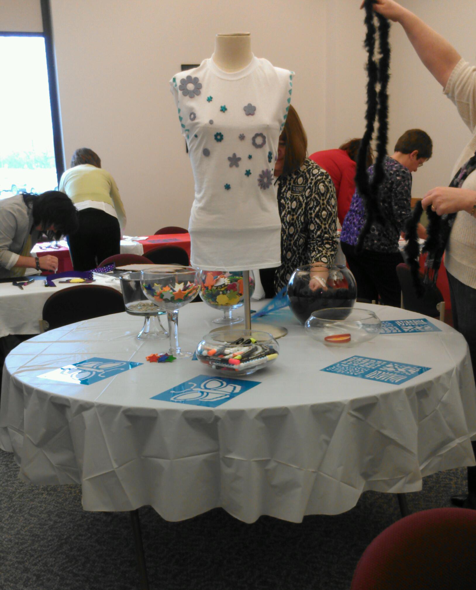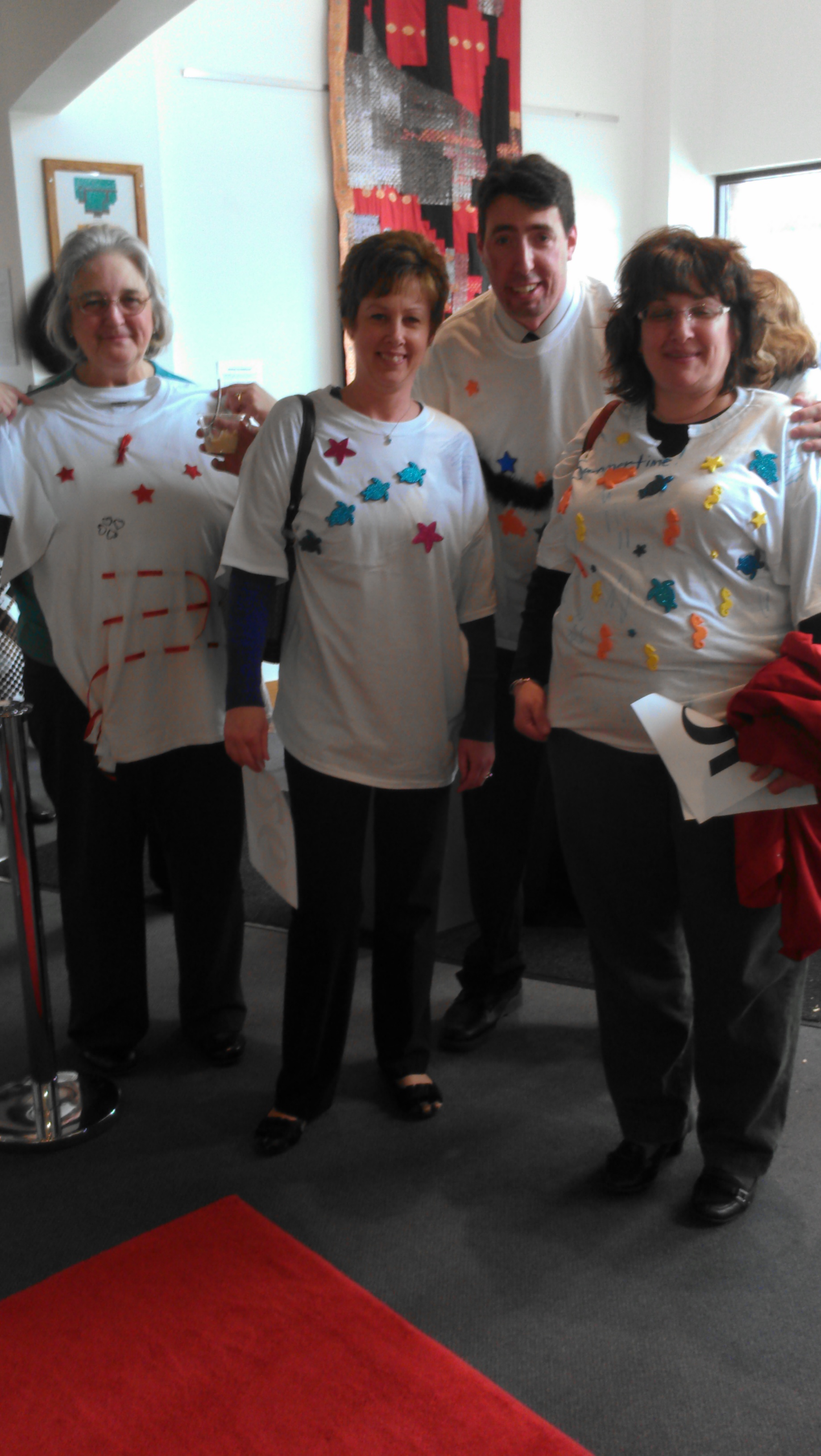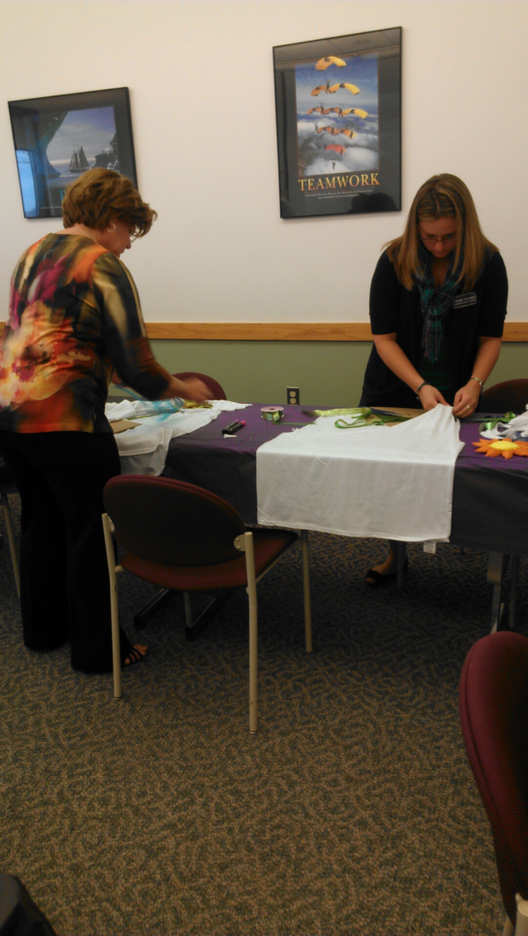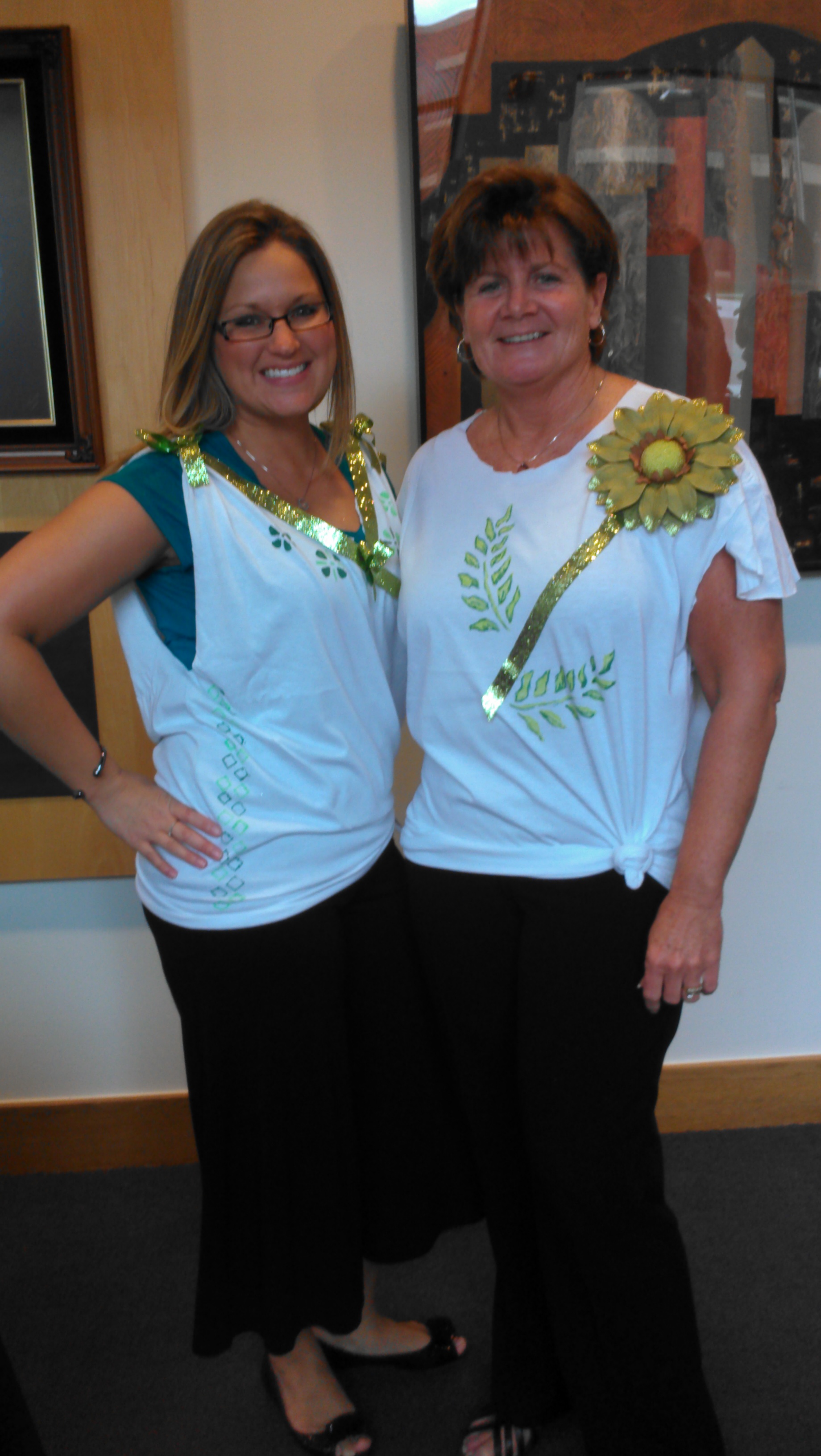 Today, April 24th, counselors from high schools all around came to visit GCC, along with their secretaries for a surprise event. This years gathering was to educate these visitors about the Fashion Program in a fun and exciting way. During the event, the counselors and secretaries  designed their own t-shirts. The end product was then displayed in a mini fashion show. The 3 people that had the most creative design and knew how to strut their stuff, on the mini runway, were awarded with a trophy.