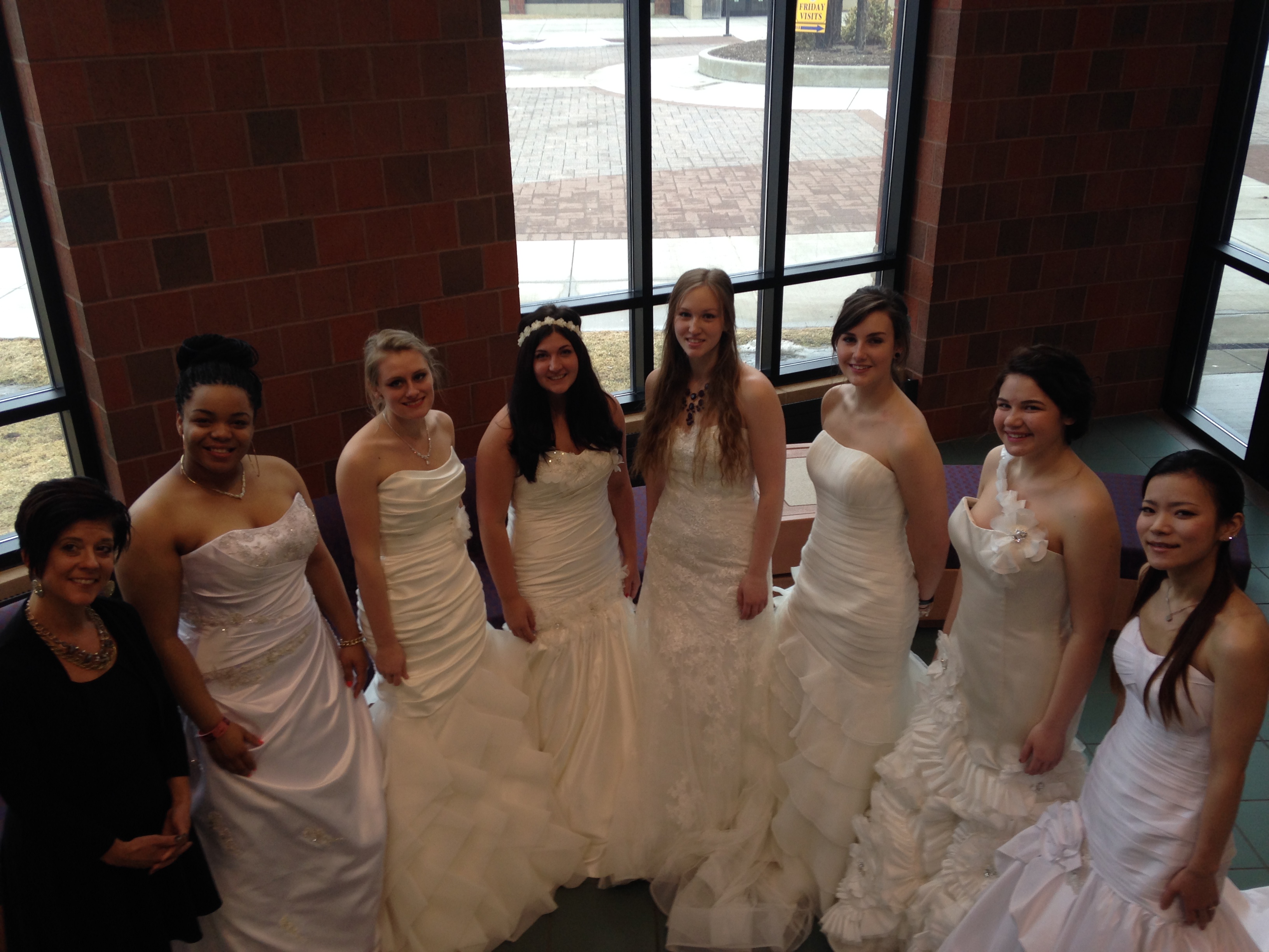 Last year I was lucky enough to work with another student on the bridal scene. I thought that producing a scene on my own this year was going to be easy but, I was wrong. This year I originally had 24 models. Due to last minute complications with models I ended up with 14 girls and 5 guys. I was able to have a successful scene with the help of my intern, Maggie Gabalski.