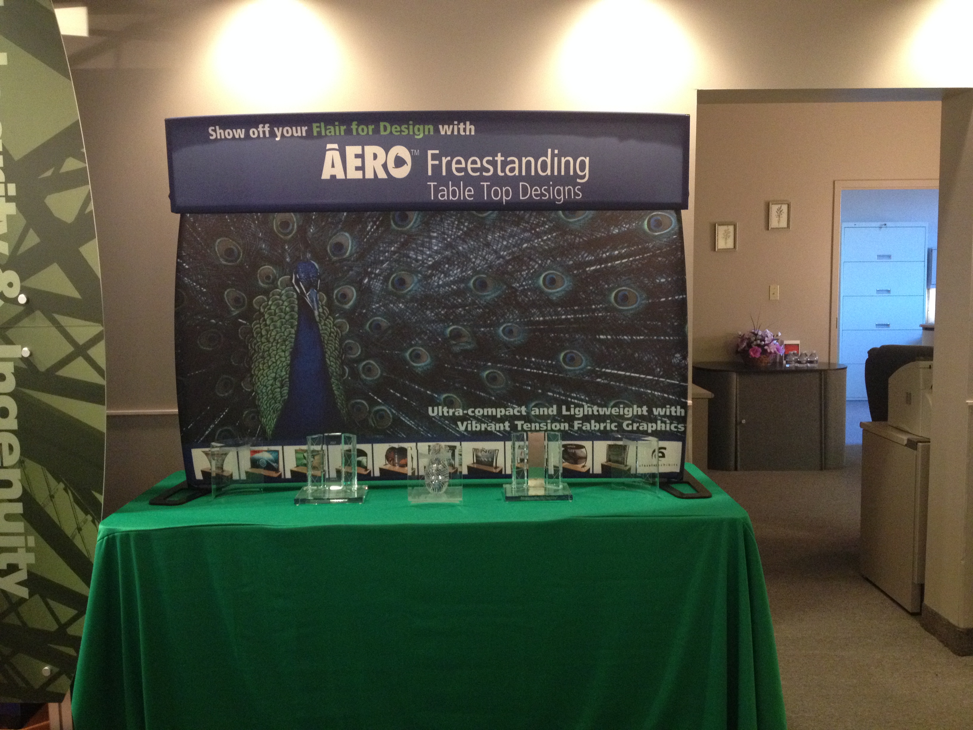 We selected FB Displays & Design and it was a fantastic decision. We met with the wonderful owner, Francine Brooks. She told us about her company and then she showed us around the office. Francine started the company in 1994 after being a stay at home mom, selling jewelry and doing aerobics classes on the side. When her daughter went off to college, Francine decided to go back to work and after a brief stint with another design company she decided to go off on her own.  Francine started off in a garage and now has a large space located in Williamsville, just outside of Buffalo, NY, where she has eight full time employees and two interns, one’s name is Zach! The company has been around for over 20 years now and has over 1000 clients.
